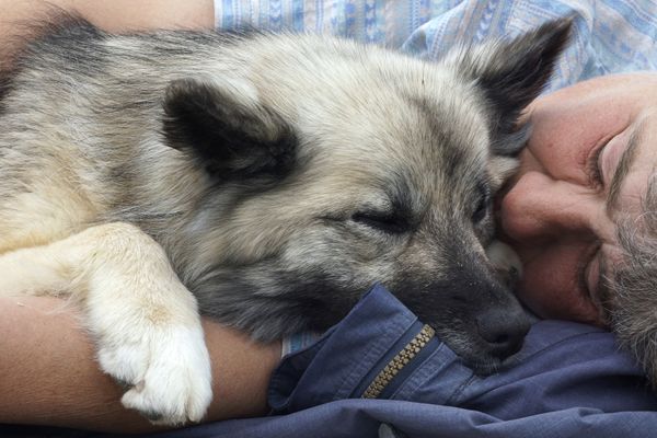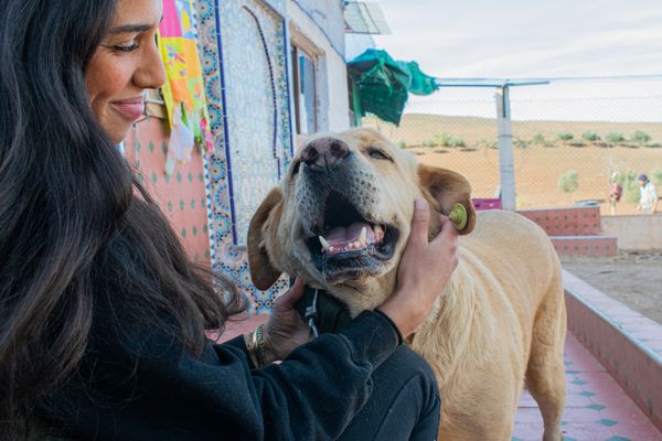 DARS founder Zineb Touzani cuddles Samson (or 'l'aspirator), a dog rescued from neglect in Morocco.